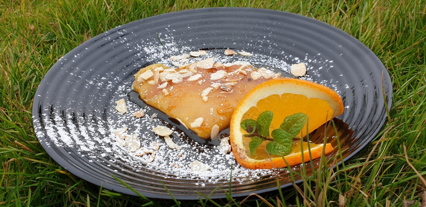 Crespelle* all’arancia con farina Mantograno® fiammeggiate al Gran Marnier e mandorle tostate