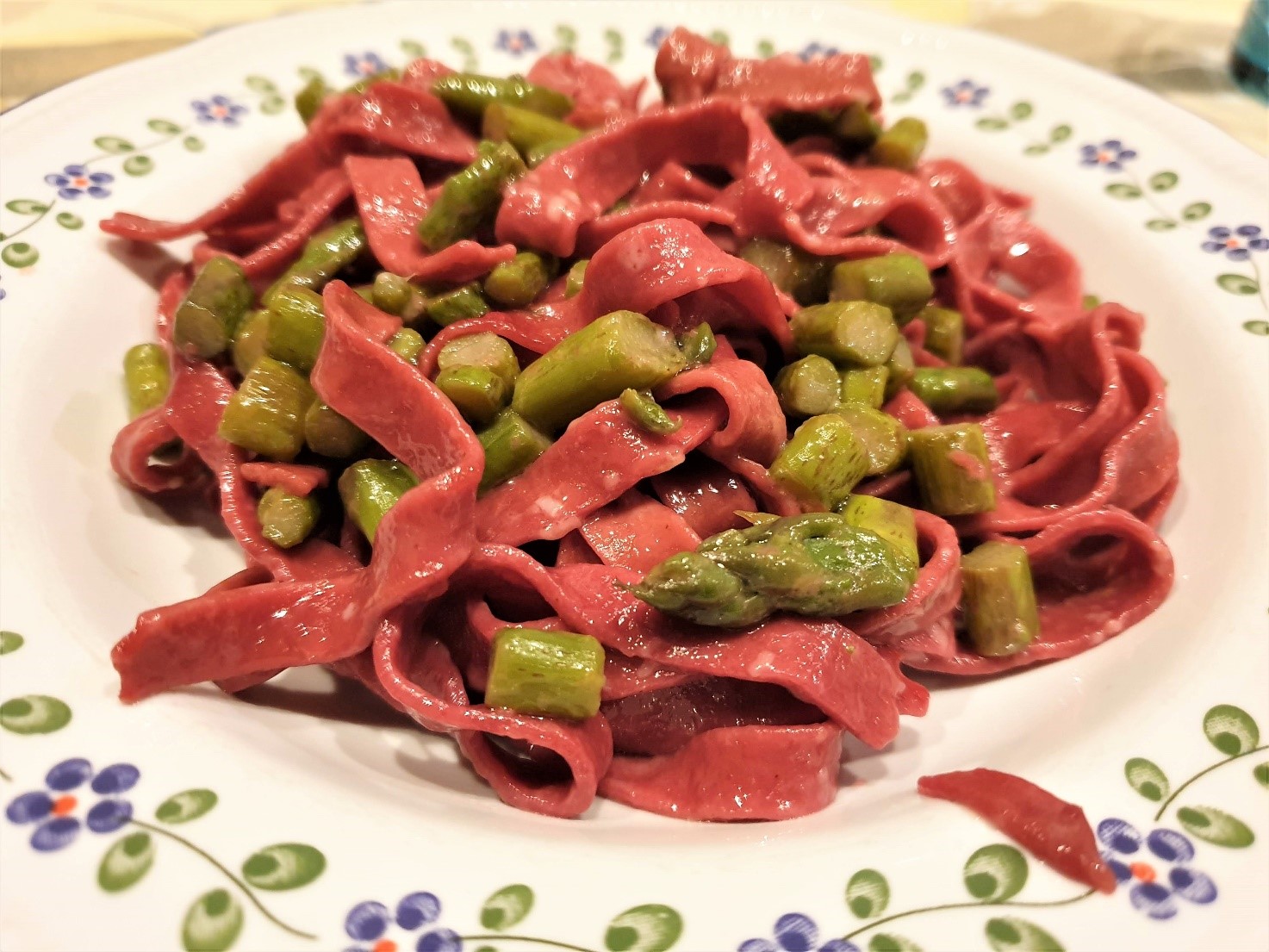 Fettuccine al rosso di rapa con piselli e burro al dragoncello