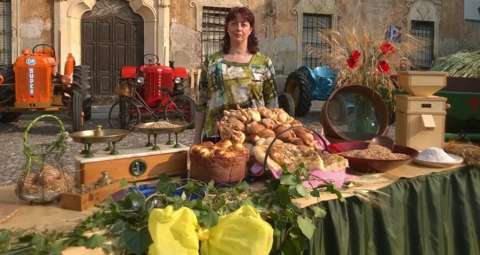 Durante la trasmissione televisiva, Paola dell'Agriturismo Eliodoro, mostra la macinazione della farina, il pane e la Torta delle rose.
