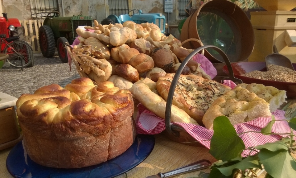 Paola dell'Agriturismo Eliodoro, al minuto 24 di questa puntata, mostra la macinazione della farina, il pane e la Torta delle rose da lei stessa preparate.